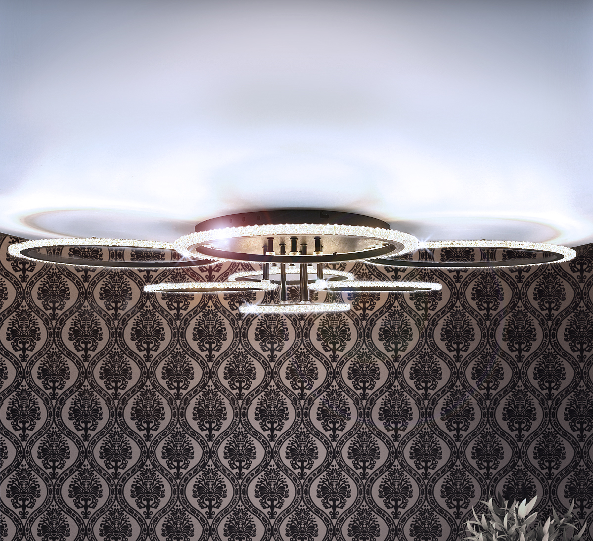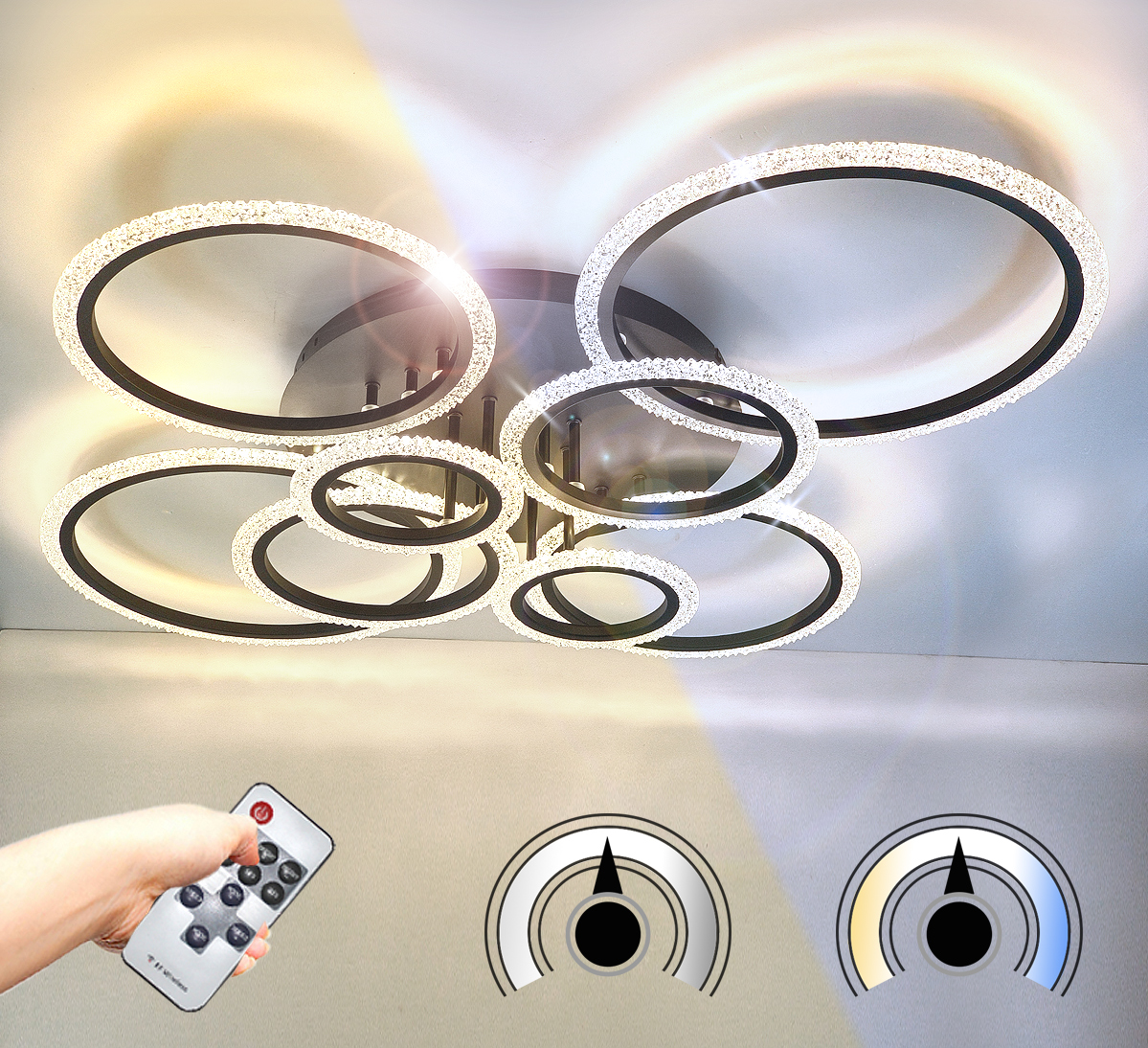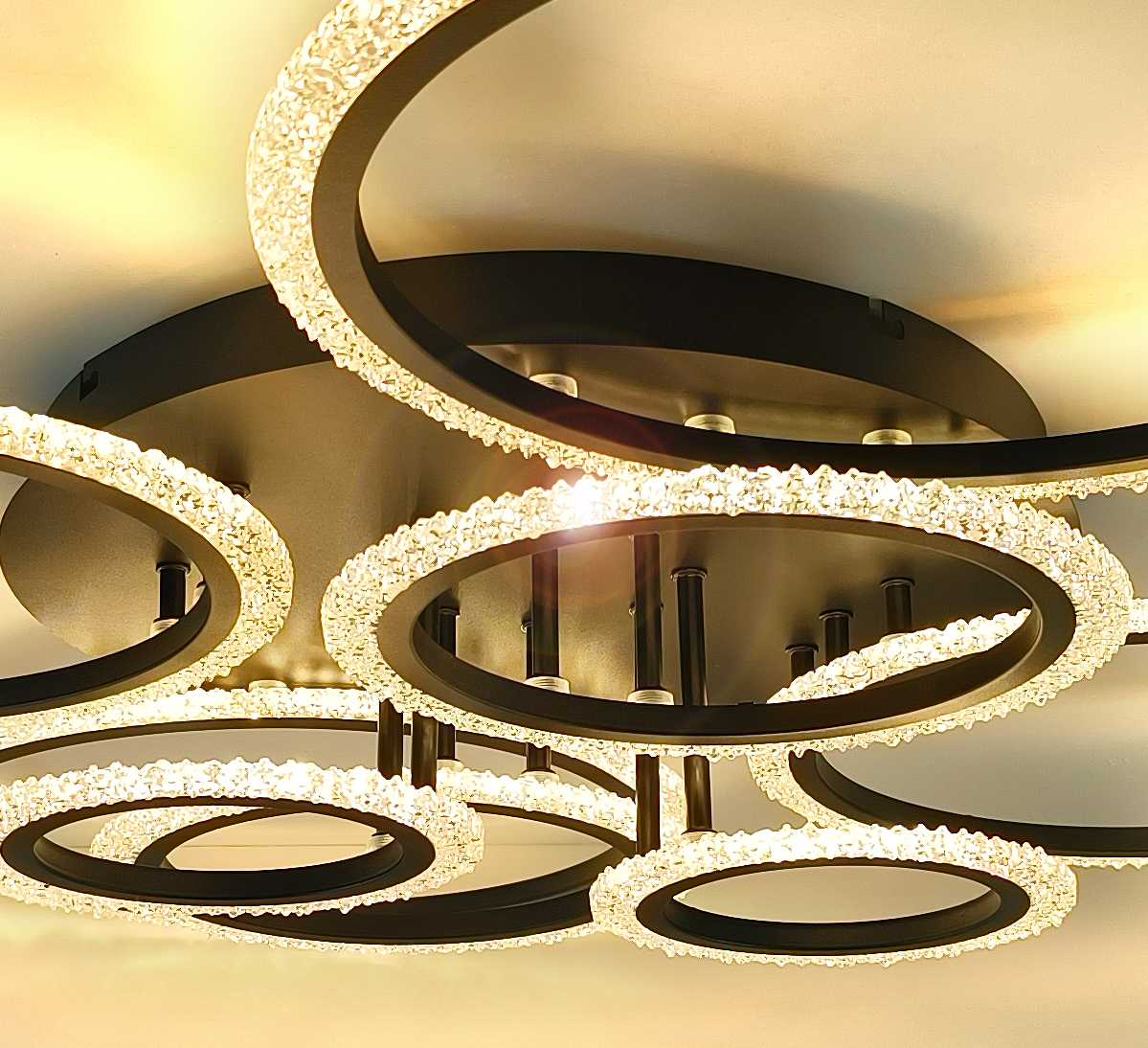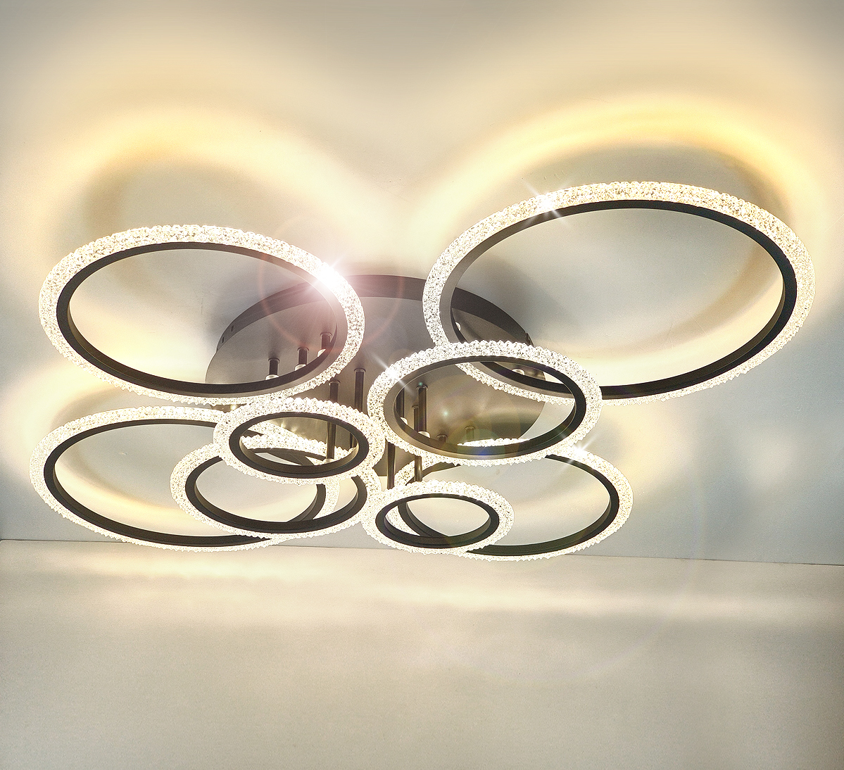 Ta elegancka lampa z 8 pierścieniami doskonale nadaje się do oświetlenia sufitowego.
