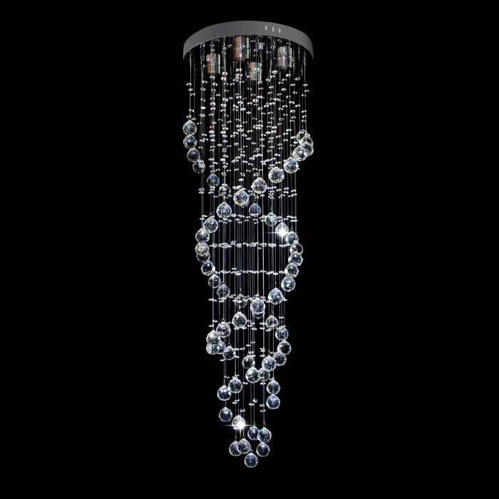 Nowoczesny żyrandol kryształowy typu spirala to propozycja do wysokich pomieszczeń. Lampa mierzy długość 150cm licząc od sufitu aż po najniższą kulę kryształową.