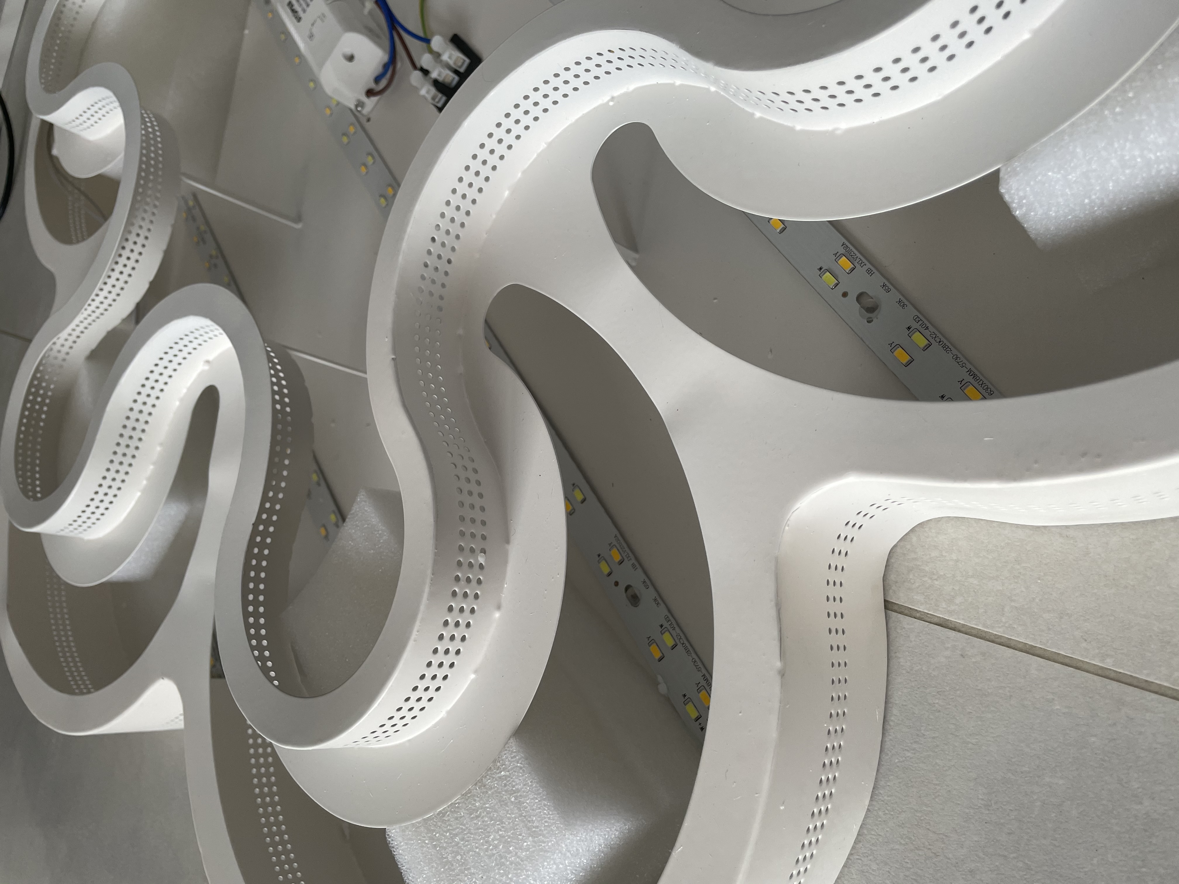 Plafon cały jest z metalu malowany proszkowo na biało - można go we własnym zakresie pomalować ponownie farbą w sprayu - będzie jak oryginał
