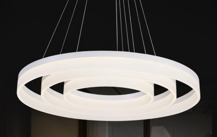 Prezentowany model lampy LED Ring składa się z trzech obręczy, których wysokość można dowolnie regulować. Poprzez regulacje linek w prezentowanej lampie led można uzyskać wiele kombinacji ułożenia poszczególnych pierścieni. Podstawa tej lampy led została wykonana z stali nierdzewnej i jest w kolorze chrom. Pierścienie w tej lampie led wykonane są z metalu pomalowanego na biało oraz pleksi mlecznej przez którą wydobywa się światło. Źródłem światła są panele LED o mocy aż 110watt dzięki czemu ta lampa led spokojnie oświetli nawet 40 metrowy salon.