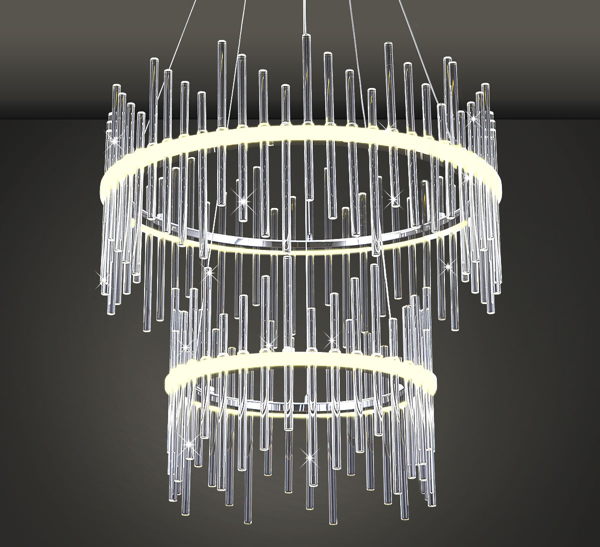 Ta imponująca i ekstrawagancka lampa sufitowa jest wyjątkowym elementem przyciągającym wzrok w Twoim domu dzięki wysokiej jakości szklanym prętom.