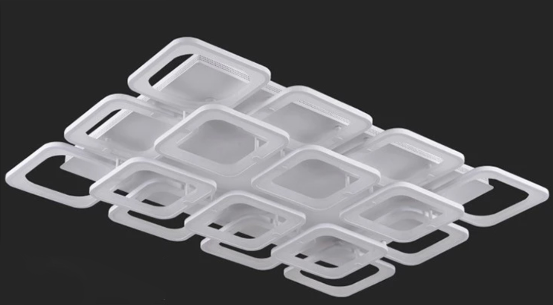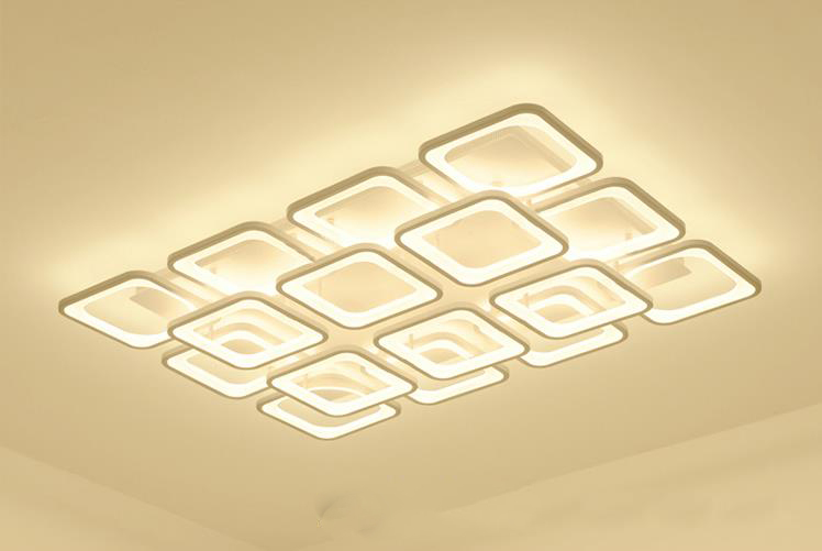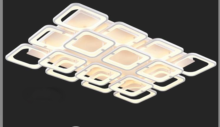 Nowoczesny plafon led składający się z 16 kwadratowych ramion uzyskując wymiary 120x90cm osiąga miano największego plafonu tej serii. Plafon zawiera pilota zdalnego sterownia którym można regulować barwę światła w zakresie od zimnej do ciepłej, a także ma możliwość przyciemnienia i rozjaśnienia. Ramiona tego plafonu led wykonane są z metalu oraz akrylu przez który wydobywa się światło.