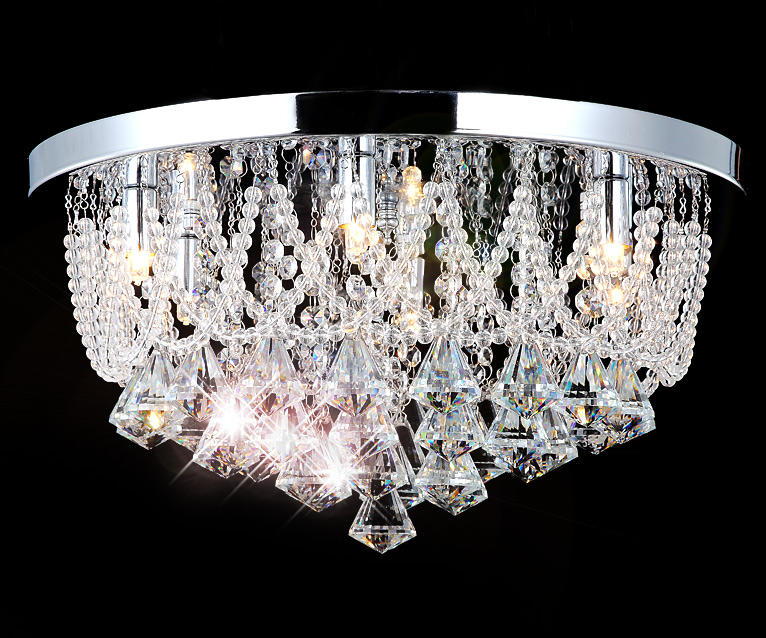 Ten designerski kryształowy plafon z iskrzącymi się kryształami szkła K9 to bardzo nowoczesny, fantazyjny element każdego sufitu.