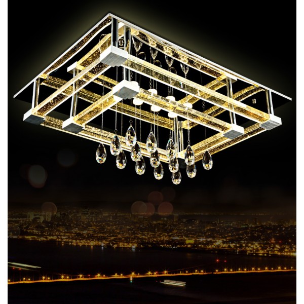 Niesamowicie efektowny duży plafon kryształowy LED z wysokiej jakości kryształów K9, korpus ze stali nierdzewnej
