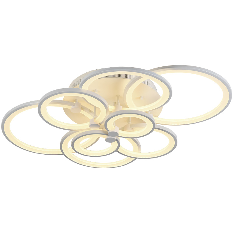 Nowoczesny plafon led składający się aż z 8 pierścieni dzięki którym uzyskujemy 100cm długości. Ten nowoczesny plafon led zawiera pilota zdalnego sterownia którym można regulować barwę światła w zakresie od zimnej do ciepłej, a także ma możliwość przyciemnienia i rozjaśnienia. Pierścienie tego plafonu led wykonane są z metalu oraz akrylu przez który wydobywa się światło.