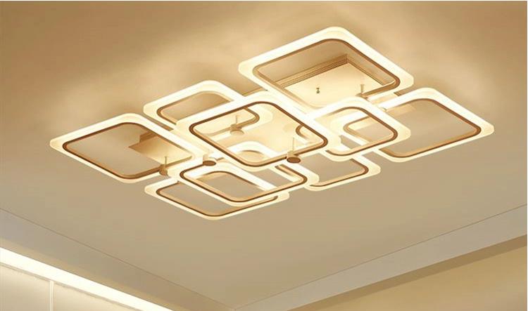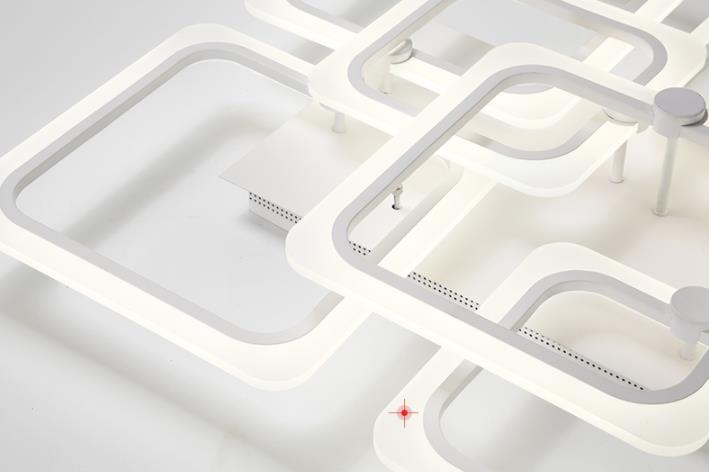 Nowoczesny plafon led składający się z 9 kwadratowych ramion uzyskując wymiary 110x70cm. Ten nowoczesny plafon led zawiera pilota zdalnego sterownia którym można regulować barwę światła w zakresie od zimnej do ciepłej, a także ma możliwość przyciemnienia i rozjaśnienia. Ramiona tego plafonu led wykonane są z metalu oraz akrylu przez który wydobywa się światło.