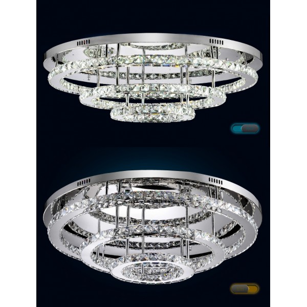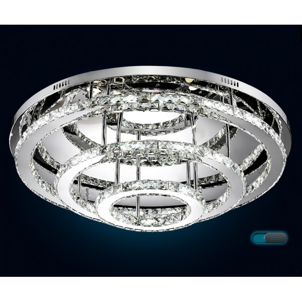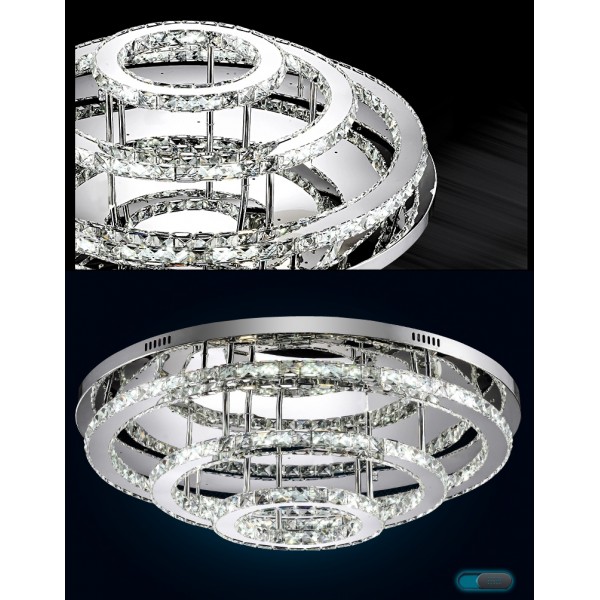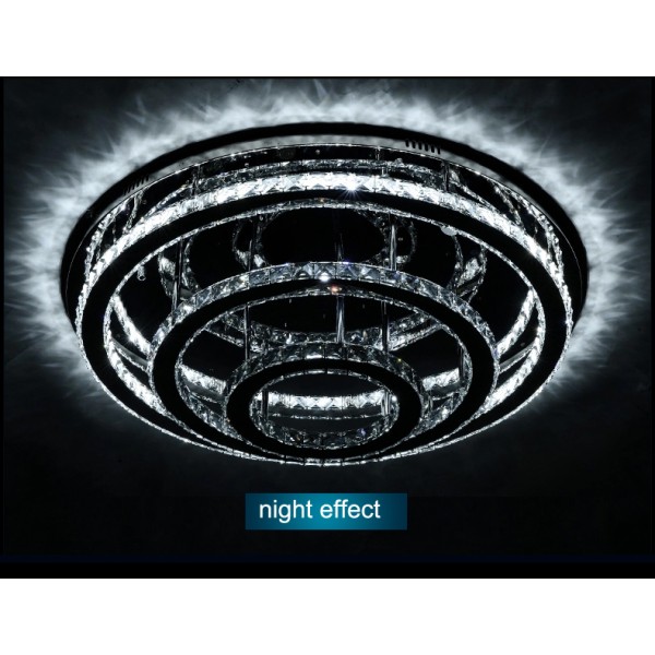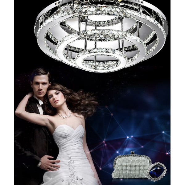 Niesamowicie efektowny duży plafon kryształowy LED z wysokiej jakości kryształów K9, korpus ze stali nierdzewnej
