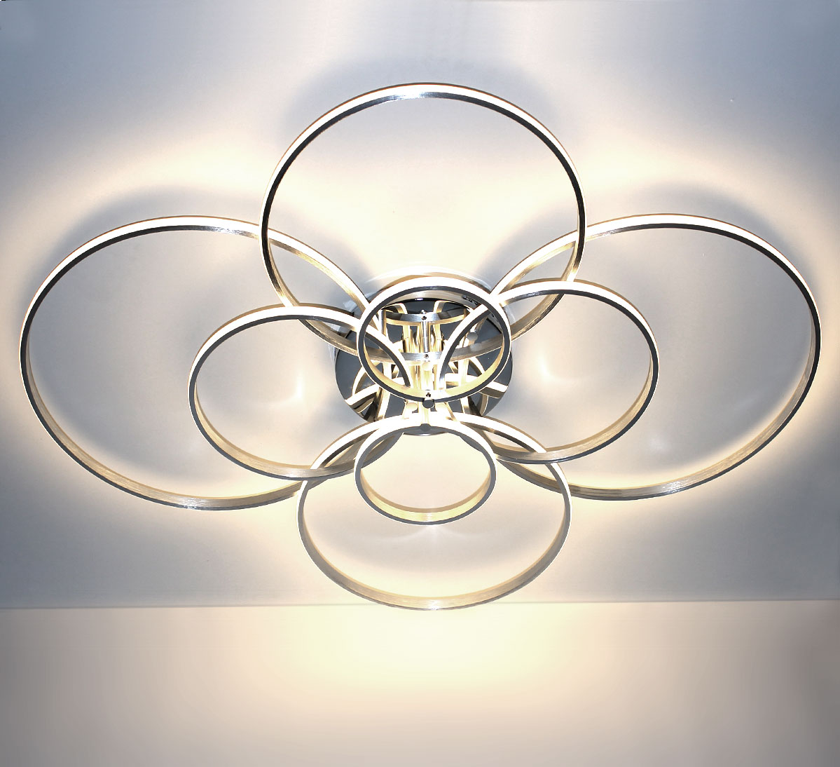 Ten elegancki plafon led z 8 pierścieniami wykonanymi z metalu i plastiku doskonale nadaje się do oświetlenia sufitowego.