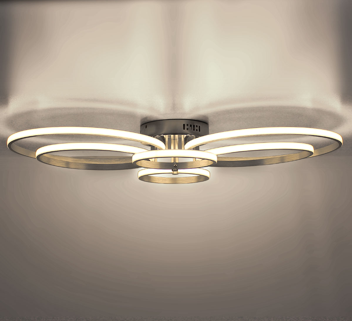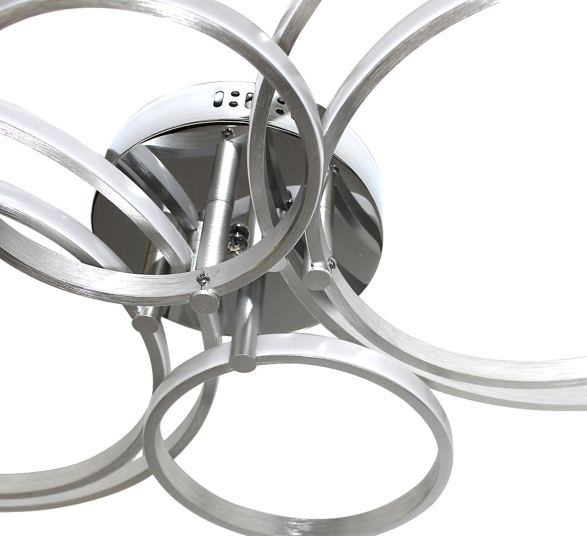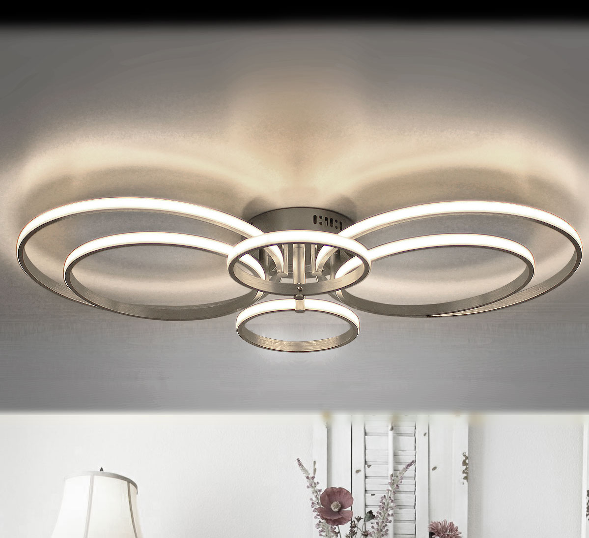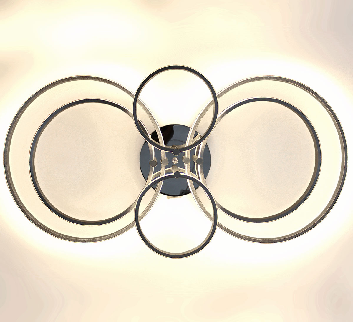 Ten elegancki plafon składająca się z 6 pierścieni wykonanych z metalu i tworzywa sztucznego, doskonale nadaje się do oświetlenia sufitowego.