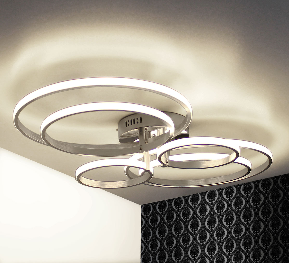 Plafon jest dość duży o długości 90cm. Oświetlenie pochodzi z zewnątrz pierścieni.