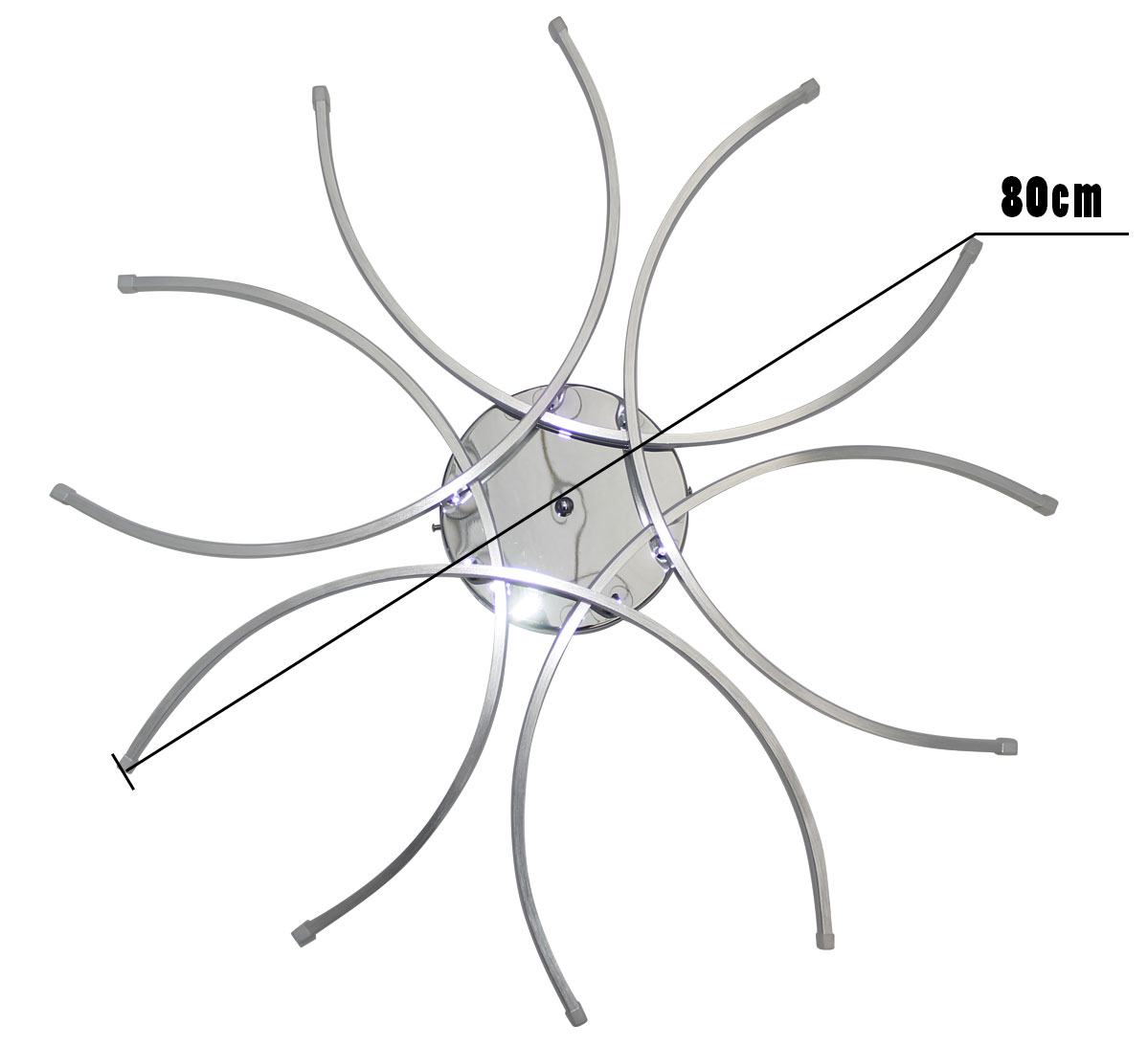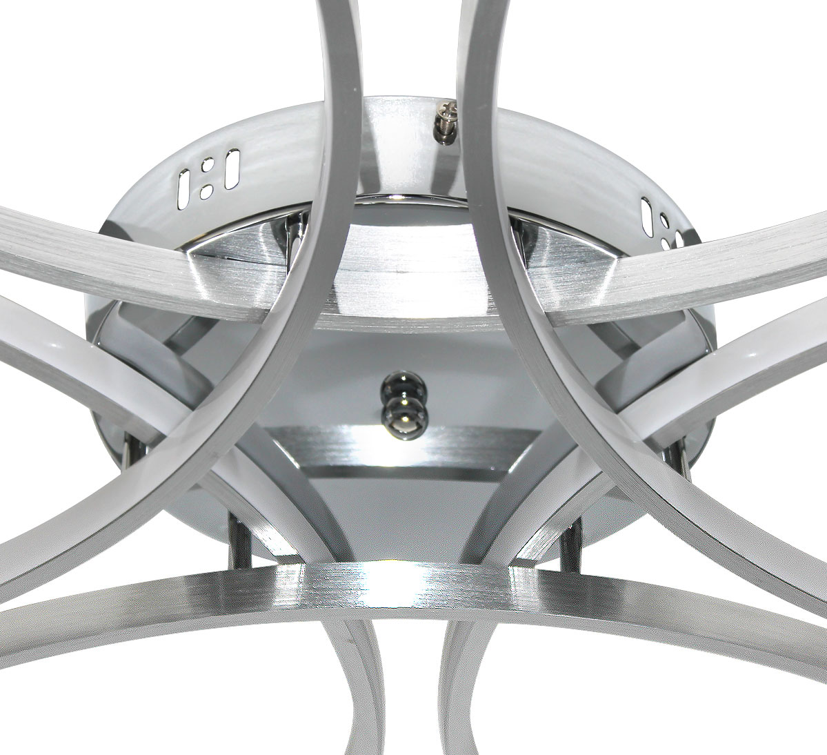 Powierzchnia podstawy plafonu wykonana jest z chromu, same łuki ze szczotkowanego aluminium.