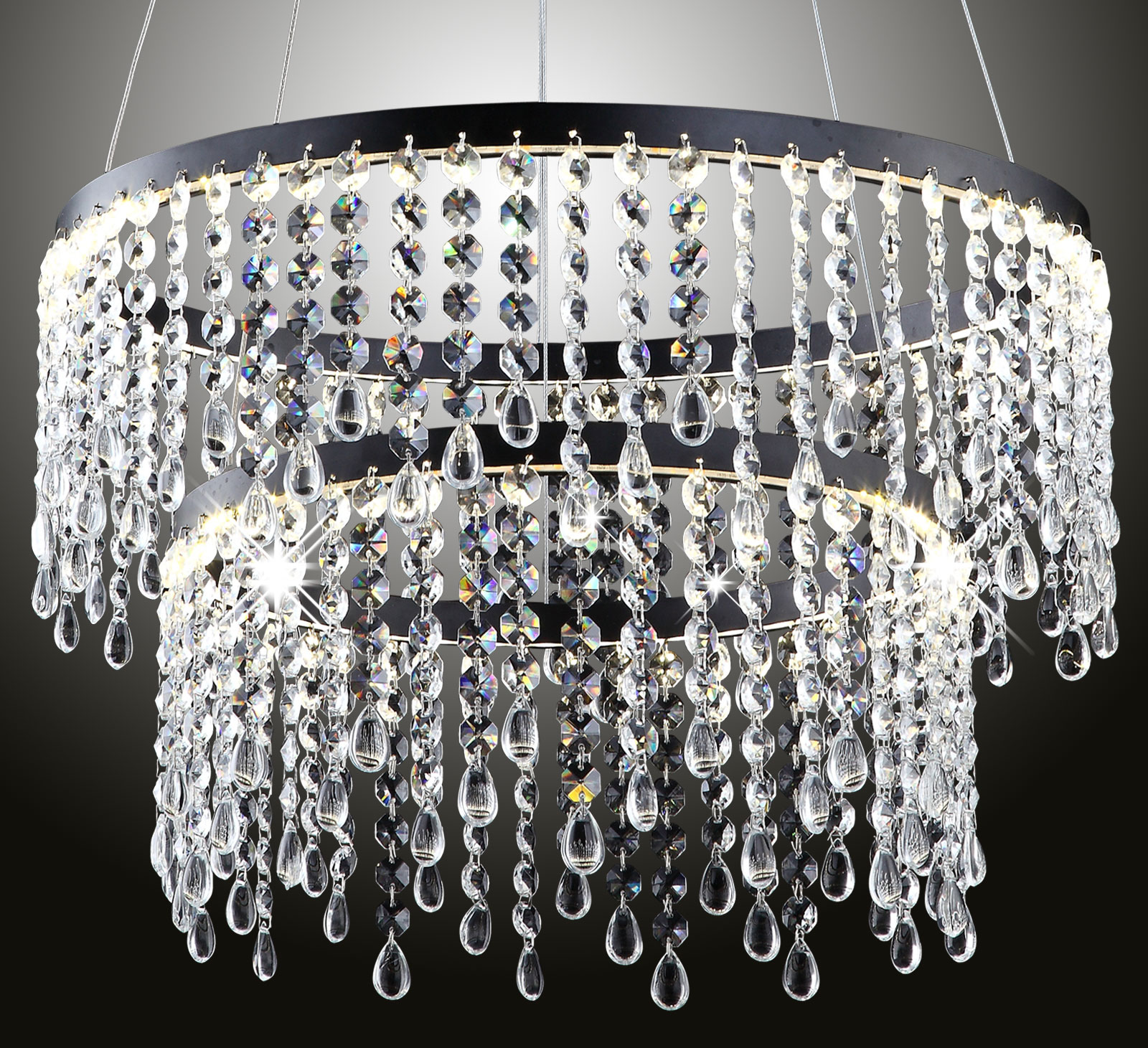 Ten designerski żyrandol kryształowy z lśniącymi błyszczącymi kryształkami K9 jest niezwykle ekstrawagancki,