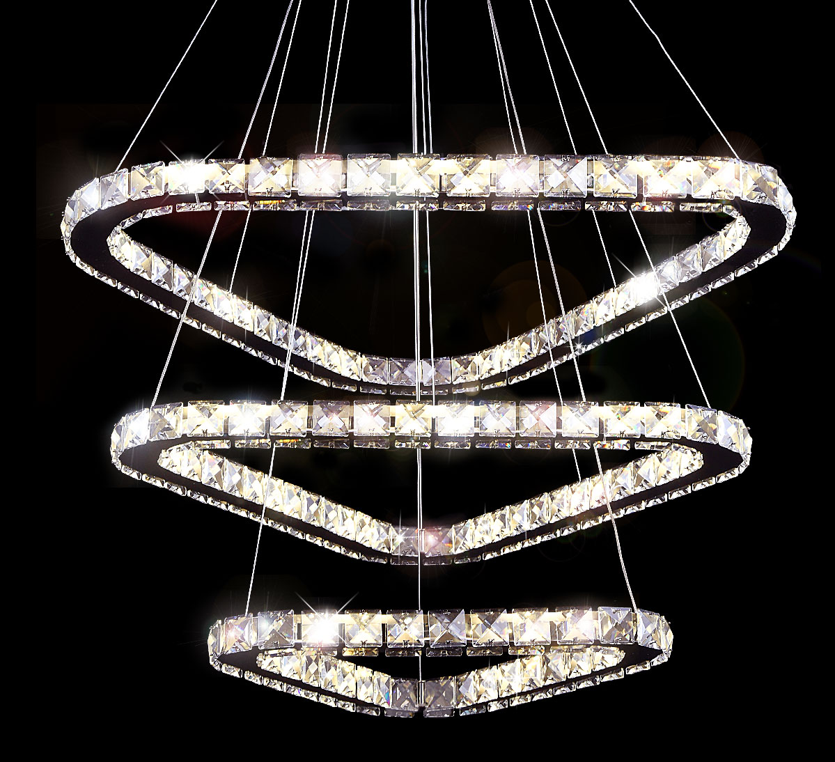 Wspaniałe gry światła są tworzone przez lustrzaną powierzchnię chromowaną żyrandola kryształowego, który jest wyposażony w wysokiej jakości kryształy szklane K9.
