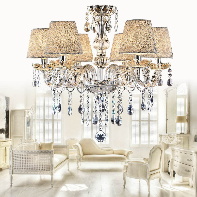Żyrandol Kryształowy Świecznik z kryształów K9 Dane techniczne: średnica: 60cm wysokość świecznika: 60cm długość łańcucha: 35cm (możliwość skrócenia) Klosze są kolorze srebnym