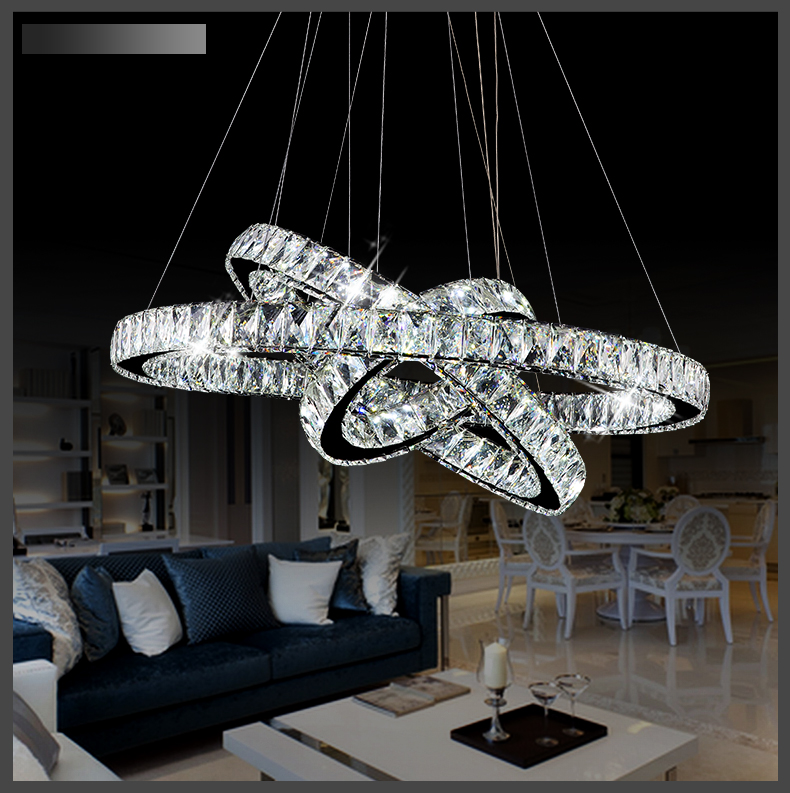 Niesamowicie efektowny duży żyrandol LED z wysokiej jakości kryształów K9, korpus ze stali nierdzewnej