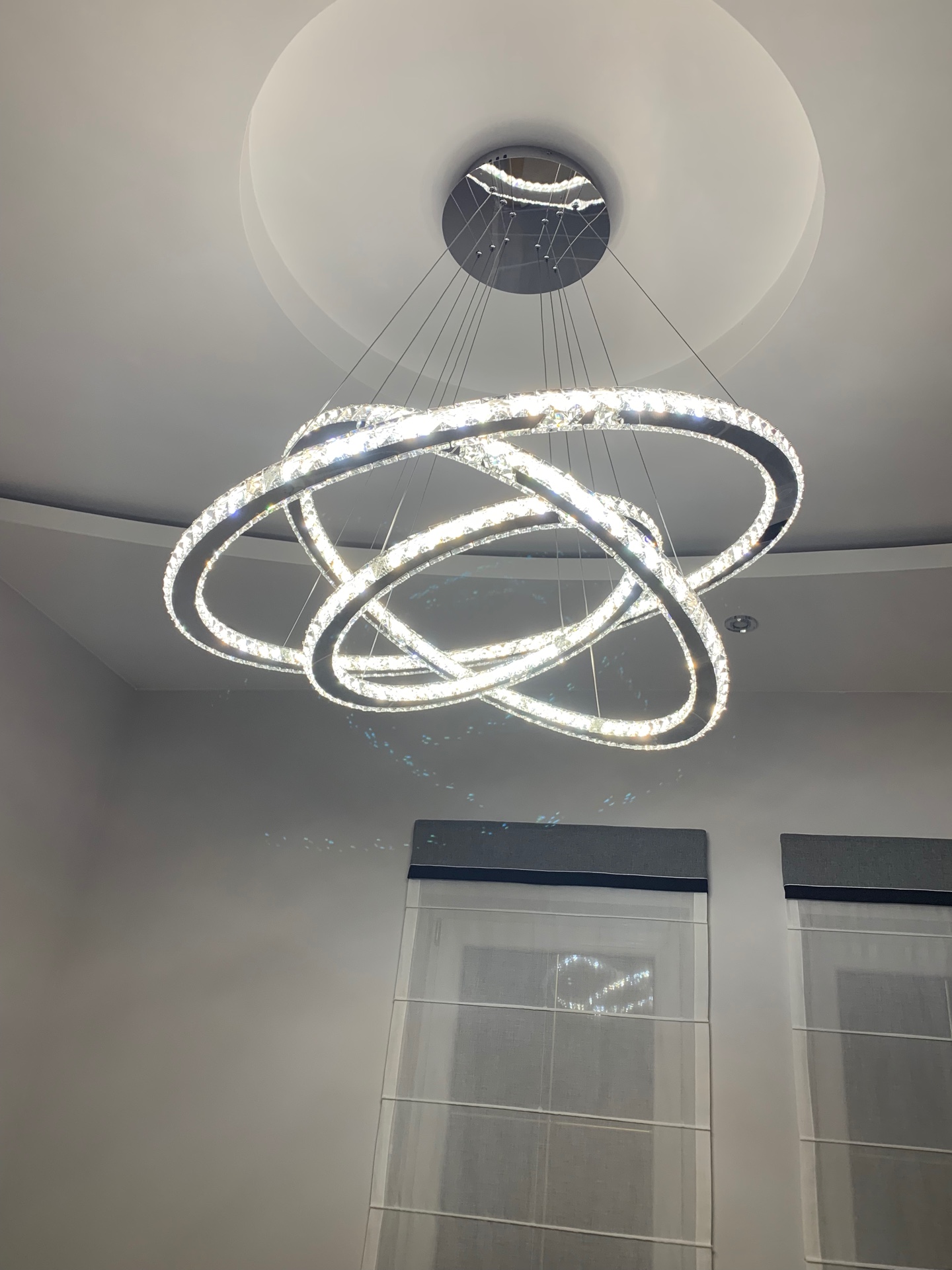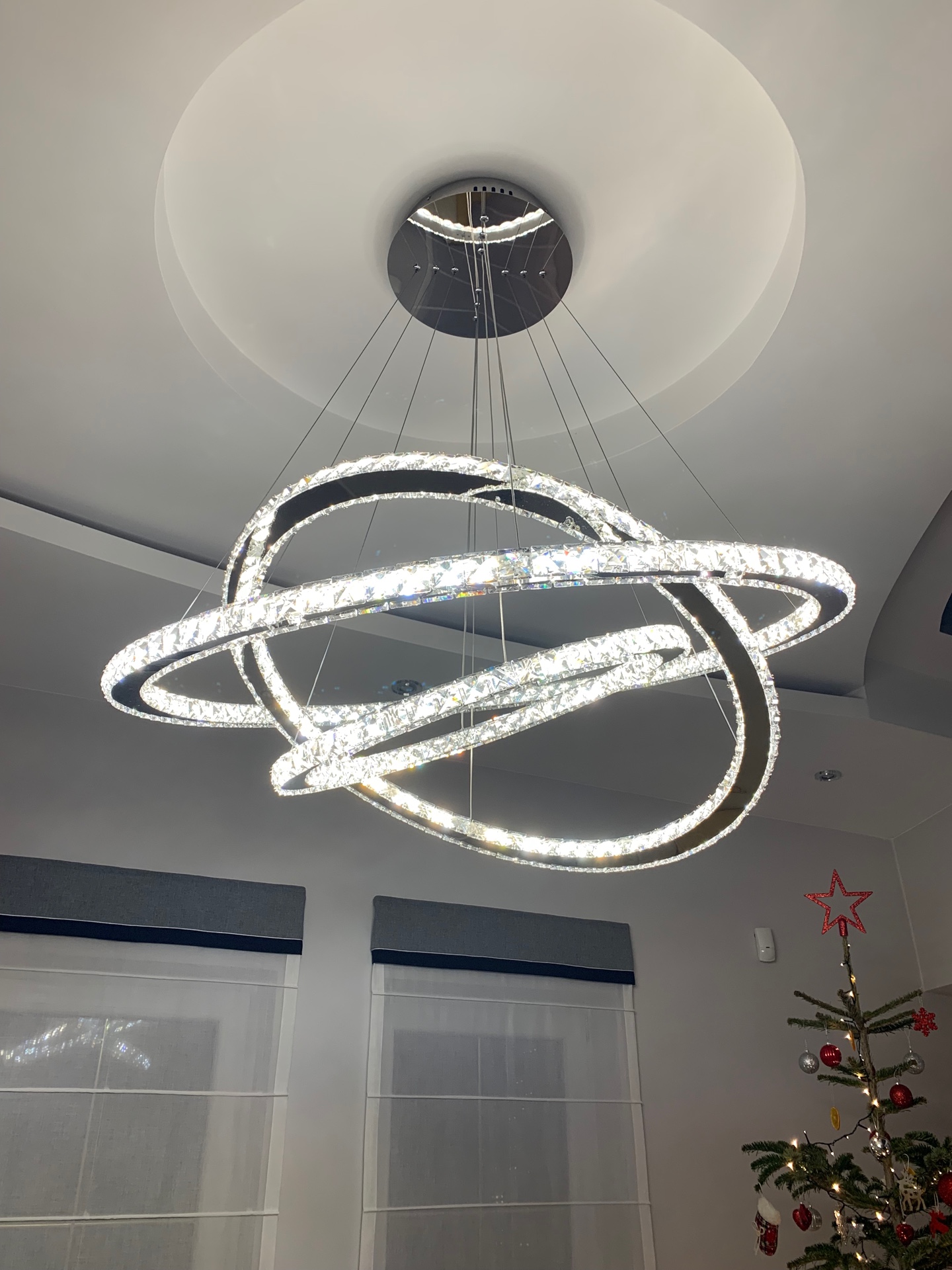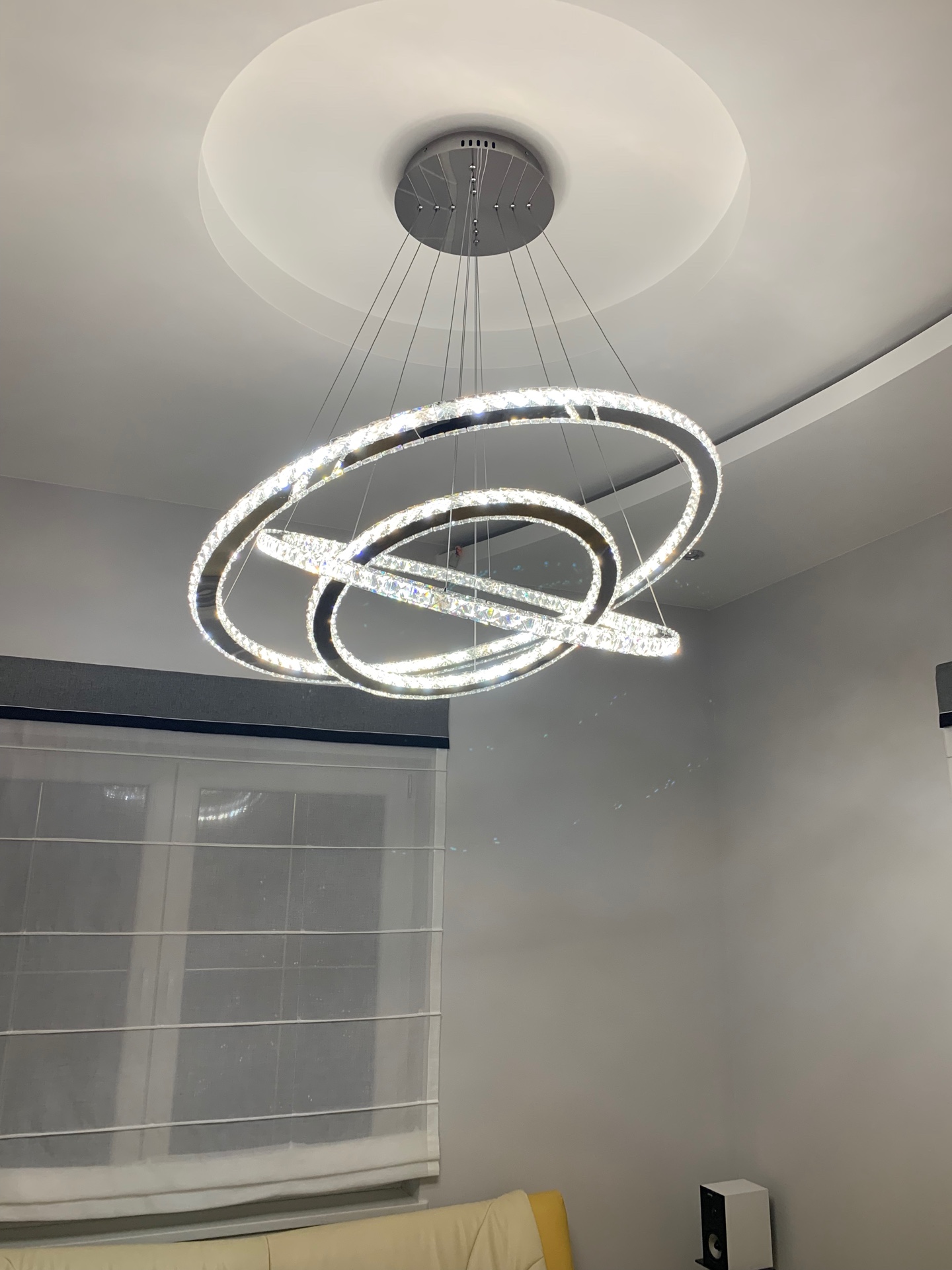 Żyrandol kryształowy RING z pilotem 100x80x60 K220 to efektowna lampa wisząca LED stworzona z myślą o wnętrzach, w których oświetlenie ma być nie tylko praktyczne, ale również dekoracyjne. Model składa się z trzech pierścieni o średnicy 100 cm, 80 cm i 60 cm, dzięki czemu świetnie prezentuje się w salonie, jadalni, wysokim holu oraz nowoczesnych wnętrzach premium.