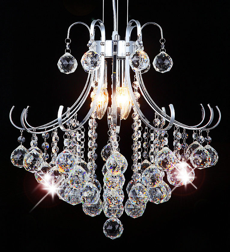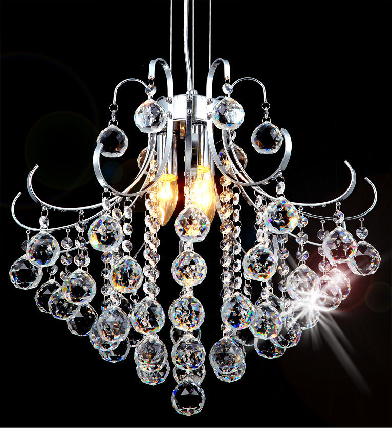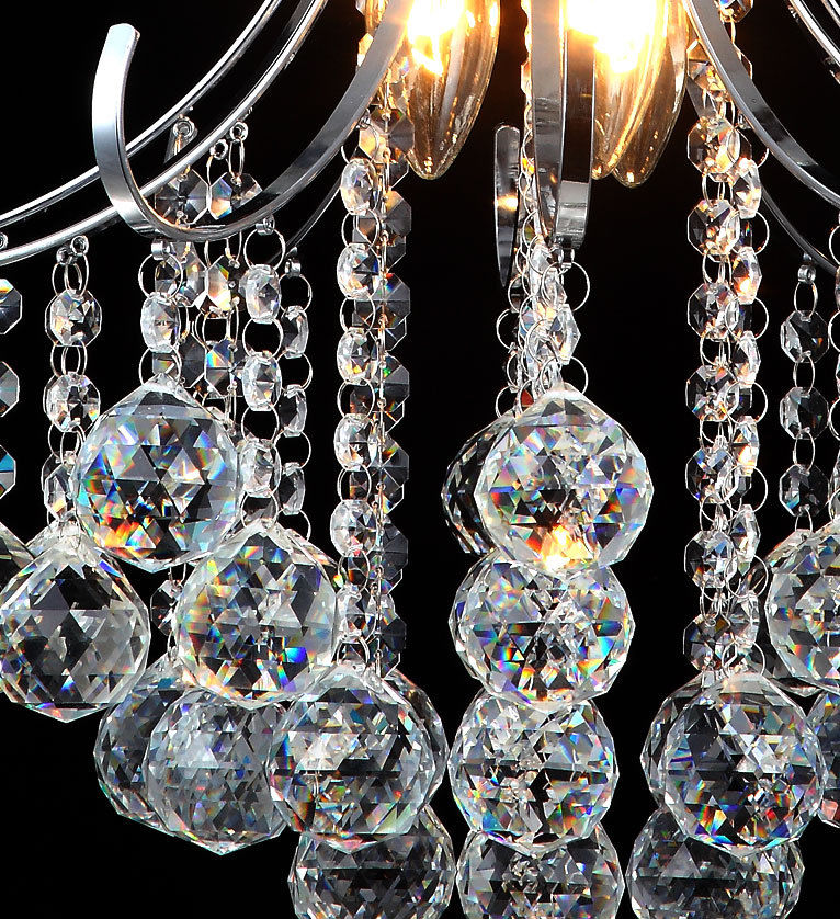 Żyrandol Kryształowy Świecznik z kryształów K9 Średnica 45cm Maksymalna długość: 100cm Minimalna długość 60cm • Kolor elementów metalowych : srebrny / chrom • Materiał: chrom / K9 musujące szklane kryształki Żarówki: 3x E14 , każdy max . 40W (brak w zestawie) • Klasa ochrony : I Stopień ochrony : IP20 • Możliwość przyciemniania : TAK